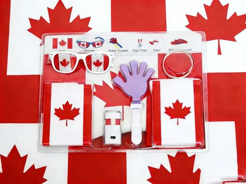 Title: Football Fan Set Flag Glasses Clap Hands and Face Colorful Cheerful Prop